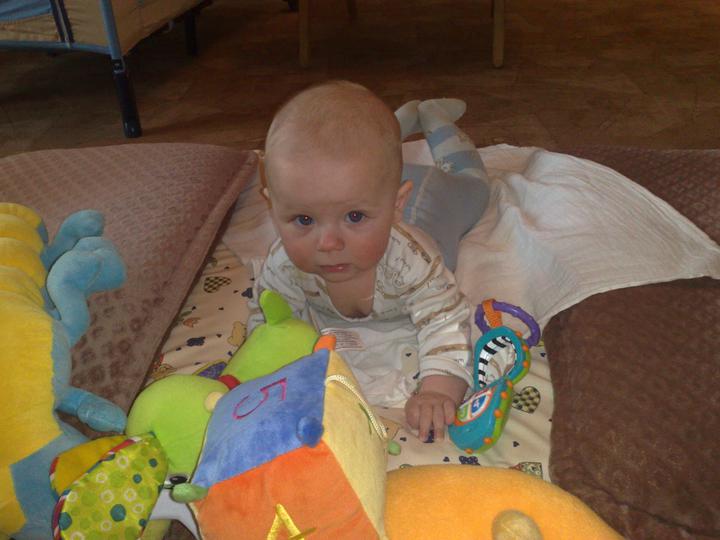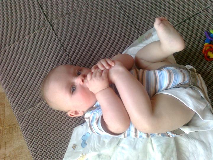 tak už máme zoubků šest a začínáme se plazit. Mamka mě musí nahánět po pokoji je to hrozná sranda