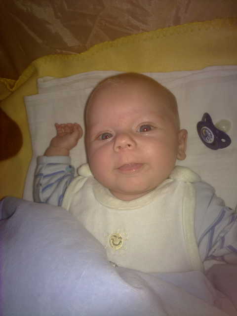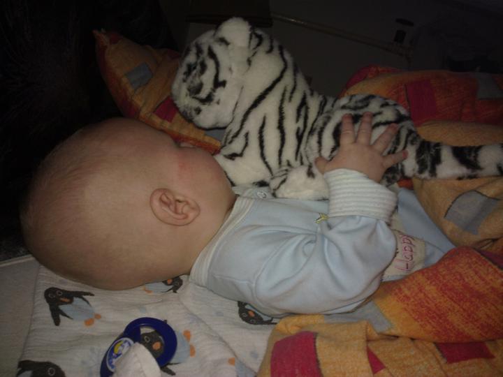 Tak mi dneska (18.4.2010) vylezl třetí zoubek no konečně našel ho tatínek