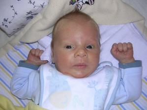 26.2.Mikulášek se začíná na nás usmívat :o))))...............10.3. Mikeš má 7.týdnů a váží 5500g :o))