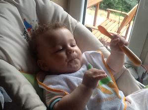 A krásně zvládl první příkrm i zavedení lepku 🙂.