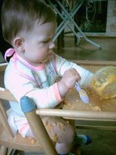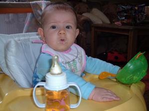 ♥ 22.5.Byla jsem na 10-ti měsíční prohlídce, měřím 69,5 cm a vážím 8120 g. Do jídelníčku pomalu zařazuji polévky a máma mi ubírá mléčné kašičky. Papaní už mám jen rozmačkané vidličkou a trénuji pití z hrnečku.