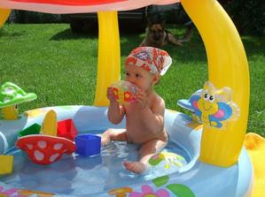 ♥ 24.6.Dostala jsem předčasně k narozeninám bazének mochomůrku a strašně se mi v něm líbí.