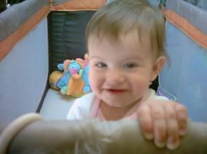 ♥ 06/09Tenhle měsíc se můžu pochlubit, že už piju jen z hrníčku, naučila jsem se paci,paci a jak jsem veliká. Když máma řekne au, tak se k ní hned přitulím aby věděla že jí mám ráda. V postýlce už stojím sama a zajímá mě jen chození, musím trénovat abych co nejdříve vyběhla sama.