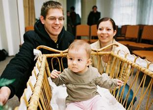 ♥ 28.3. Vítání občánků - byli jsme tam jen tři dětičky, nechala jsem se vyfotit v kolíbce a dostala jsem dětský příbor a červený ručník 🙂