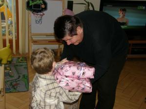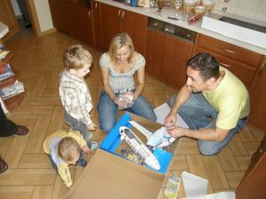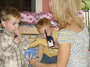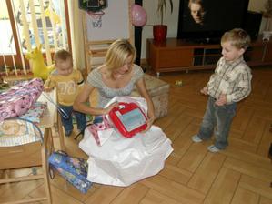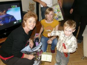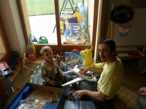 A co jsem dostal: od maminky a tatínka krásný dort a naprosto suprové letadlo, od babičky a dědy z Křečhoře malé letadlo a poschoďovou garáž, od tety Verunky a Filipa krásné pyžamko (ale ty měkké dárky mě moc nebrali), od babičky a dědy z Čáslavi doktorský kufřík a bundu od Adidasu, od pradědy a Irenky domino a magickou tabulku, od tety Bohunky a strejdy Toníka vysílačky a krásný svetříček a od tety Moniky a Nikolky batůžek a bačkůrky. Snad jsem na někoho nezapoměl. Všem děkuji za dárečky.
