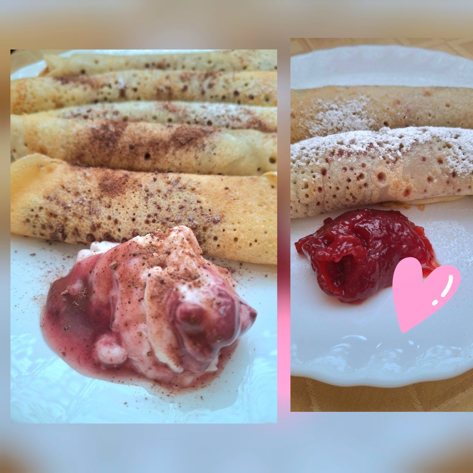 Palacinky s nutelou a cucoriedkovym jogurtom,pre manzela a pre mna s dzemom jahodovym