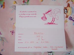 Natálka se narodila 21.2.2007,ale termín byl stanovený na 4.3.2007.Bohužel kvůli mému vysokému tlaku jsem měla vyvolávaný porod.