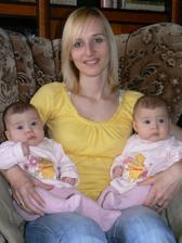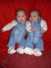 - 19.10.2008 - tak holky už jsou na světě, Nikolka se narodila ve 21.50 hod s váhou 2080g a mírou 45cm a Anetka vykoukla na svět ve 21.54 hod. s váhou 2160g a mírou 44cm. Nakonec se narodily přirozenou cestou (šikulky se obě otočily hlavičkou dolů). Narodily se o 6,5týdne dřív, tedy 33+4tt.