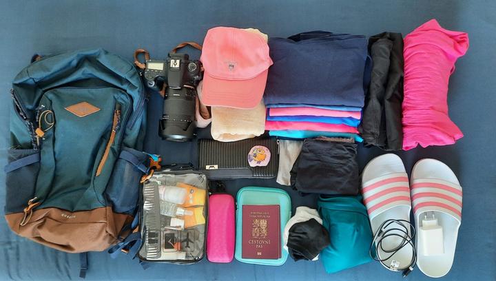 @asen No v podstatě to, co @konidana . Spodní prádlo na počet dní plus jedno navíc. Ponožky tak troje. Plavky, funkční ručník. Troje trika, legíny, kraťasy, letní šaty, tenká mikina, tenká bunda. Cestovní verze šamponu, sprcháče, kosmetiky, ... Hřeben, kontaktní čočky, malý roztok. Jezdím v teniskách, v batohu sandále. Doklady, pas, peníze ... někdy tablet / notebook. Opalovák, repelent, ... kupuji obvykle až na místě.