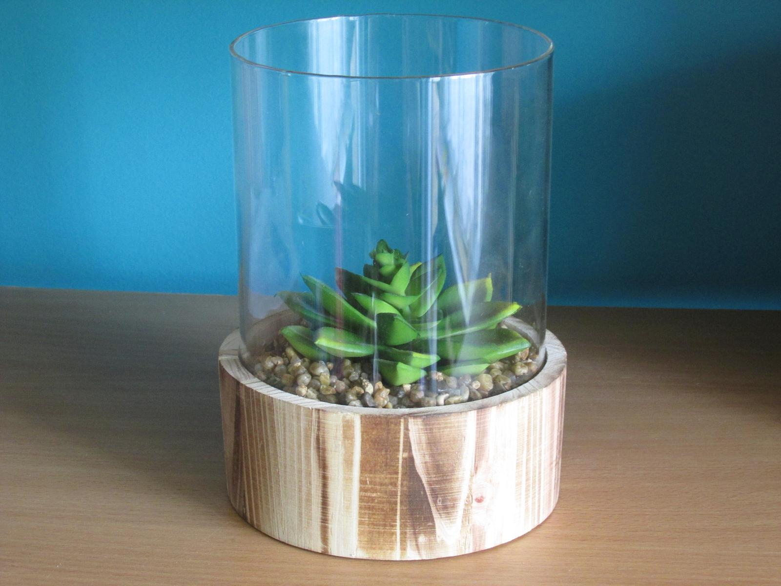 Tento typ dekorací se mi moc líbí. Jsou jednoduché a krásné. Ano, lepší jsou samozřejmě živé kytky, o tom není pochyb, ale u nás nic nepřežije. Jediný, co roste jako plevel, je vážně jen ten Rýmovník a já bych to tu ráda měla trochu víc zelenější a proto jsem sáhla po této krásné dekoraci s umělým sukulentem, který vypadá jako živý a zdobí nám obývák 🙂