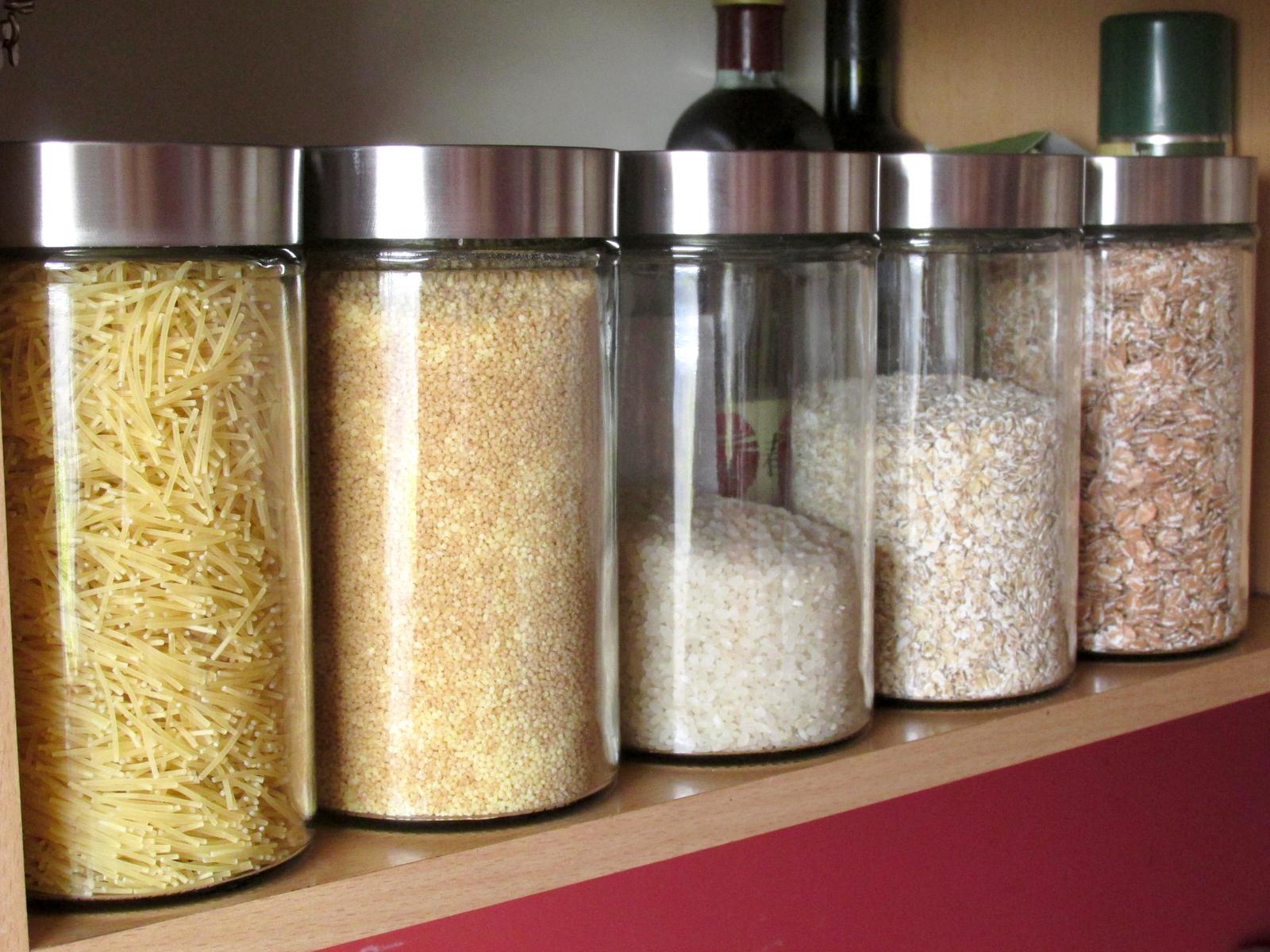 Tyto sklenice mám už hodně dlouho na "wish" listu. Nahradí plastové boxy, či nespočet otevřených pytlíků ve skříňkách a vypadají moc hezky. Určitě jich chci časem pořídit ještě víc a to včetně vysoké sklenice na špagety. Jsou pevné a bytelné.
