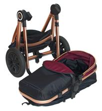 Kočárek je dostupný ve dvou variantách : elegantní šedý potah na stříbrné konstrukci nebo designový na zlaté konstrukci. Konstrukce je z lehkého hliníku. Sedátko je nejen otočné, ale lze jej i velmi snadno změnit v praktickou, pohodlnou korbičku. Zadní kola jsou nafukovací se spojenou pákovou brzdou. Přední otočná kolečka z EVA pěny jsou vybavena aretací, pro lepší manipulaci na různém terénu.