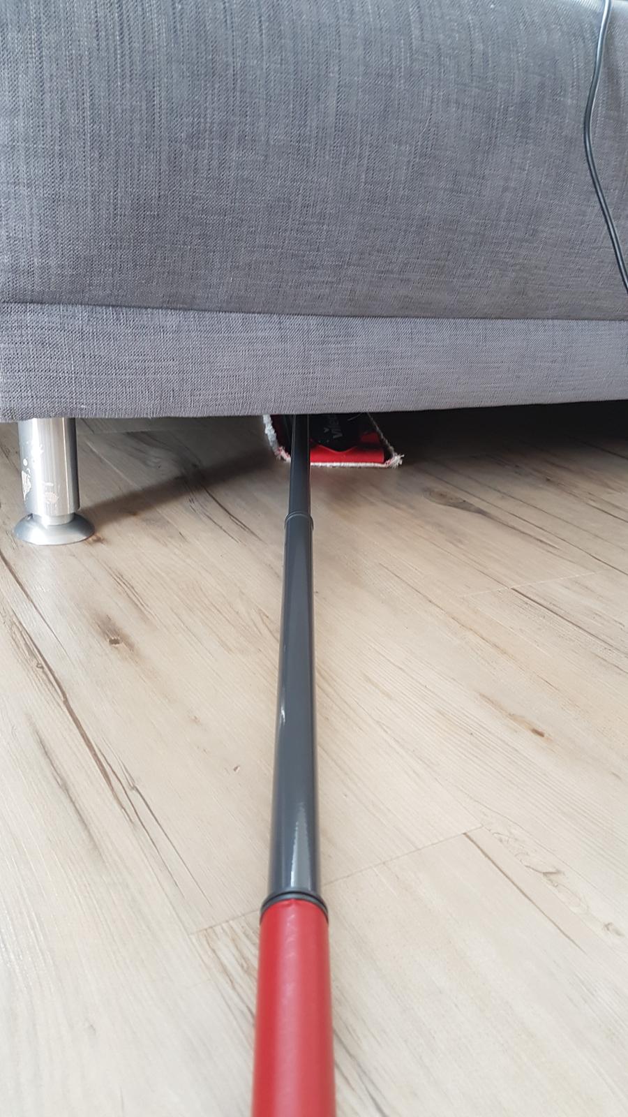 + jde položit až na podlahu, tím pádem se s ním pěkně vytře i pod postelí apod. (akorát krátká tyč a velká postel může být trochu problém)