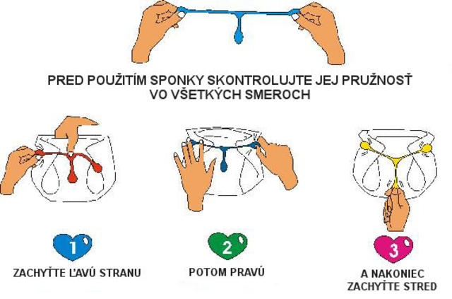 Používají se tak, že se sponka drží ve středu a všechny 3 „nožky“ se postupně rukou natahují po dobu několika sekund, aby se aktivovala paměť materiálu a spona lépe držela na plence. Pak se spona zahákne na jednom boku, poté na druhém a nakonec dole směrem k rozkroku.