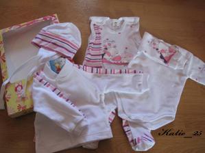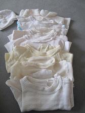 oblečení- body kr.rukáv, dl.rukáv, dupačky, polodupačky, kabátky, zavinovací košilky, čepička, rukavičky, ponožky ..ještě nám chybí nějaký pěkný KOMPLET DO PORODNICE !!!!