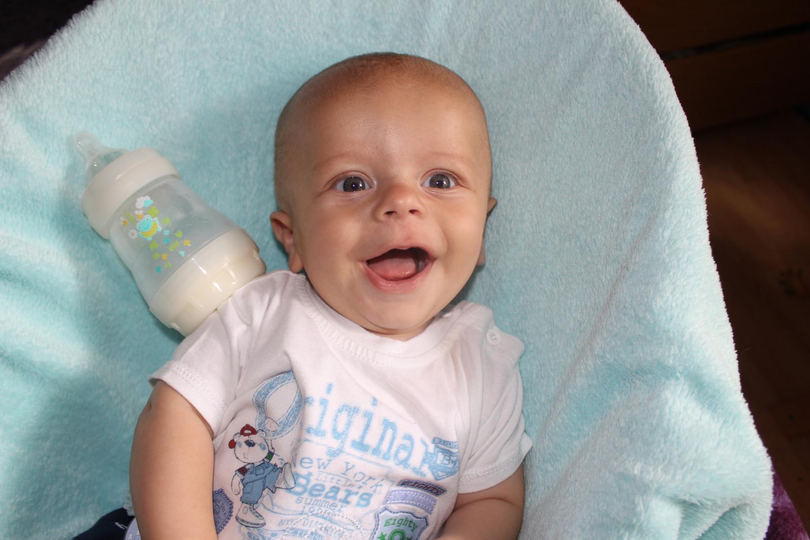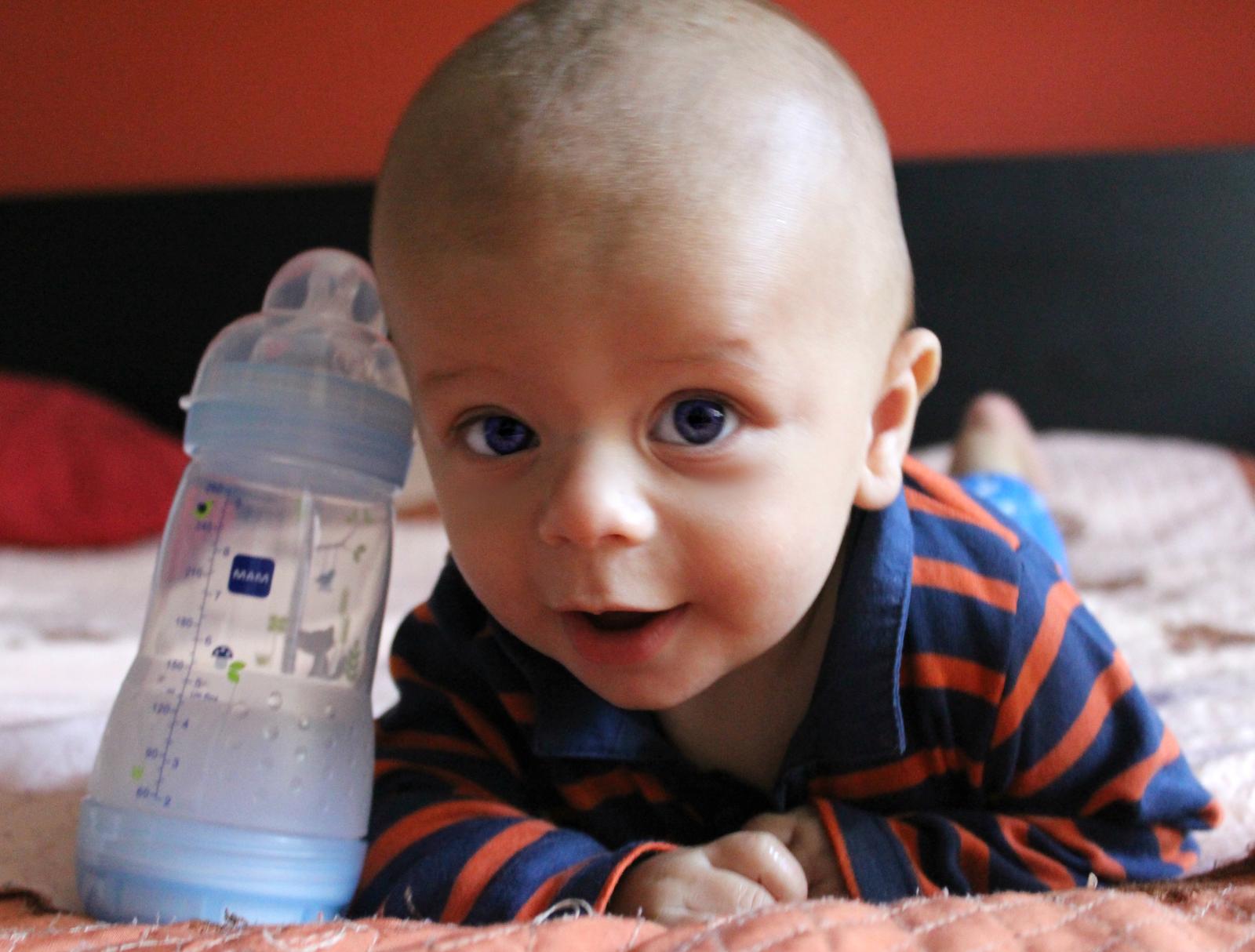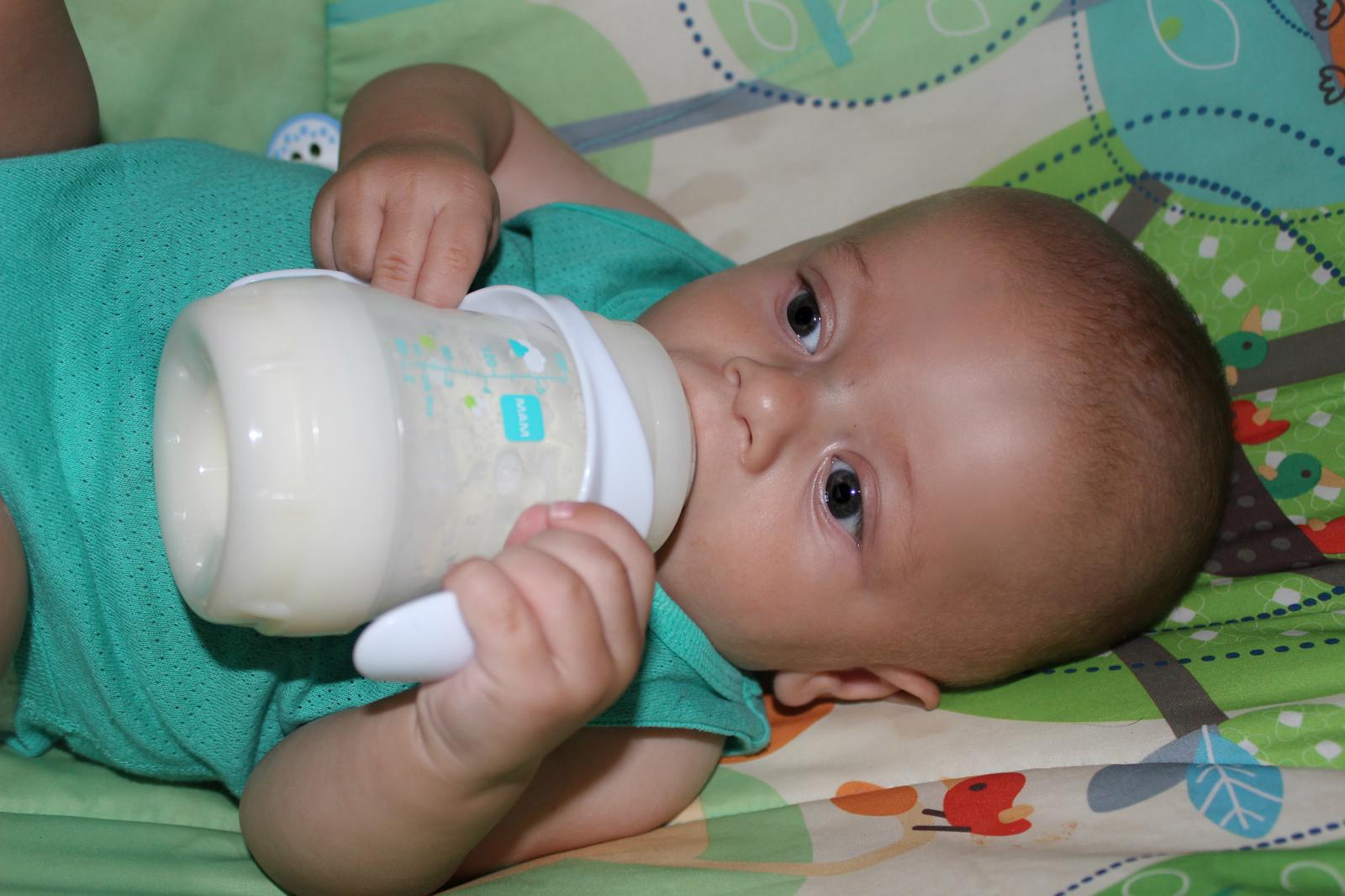 Další výhodou, pro nás bylo, že když jsme viděli, že Adámek na lahvičku reaguje dobře. Dali jsme mu na ni držáček a opravdu se s ní naučil sám pít. Pochopil, že si musí lahvičku zaklánět a nebo si ji prostě jen tak žužlal.