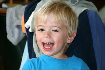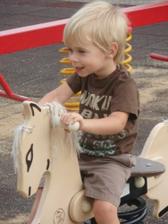 Od 19ti měsíců je bez dudlíku, od 20 měsíců jsme přestali používat přes den pleny. Teď ve 22,5 měsících je má už jen na spaní. Kecá mu to jak blázen, všechno opakuje, je s ním opradu legrace. Stále nespí celou noc, budí se.
