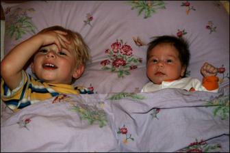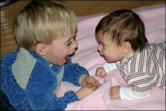 Matějovi bylo 20 a půl měsíce, když se mu narodila sestřička Emma. Je na ní hrozně hodný, pořád by ji pusinkoval.