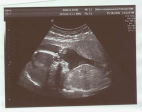 13.11. 08» Miminko vypadá menší než by mělo být, tak mě radši dr. poslala na ultrazvuk do nemocnice. V nemocnici zjistili, že plod odpovídá 27+2 tt (místo 28+2) a je tedy o týden max. dva menší, ale všechny rozměry odpovídají, takže jsme sice menší, ale v pořádku. Odhadovaná hmotnost 1070 g.