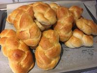 ...+ vejce na potření a eventuálně něco na posyp....jsou dobré, i když se nahradí část mléka vodou (jen z vody jsem nezkoušela)...Postup klasika..nechat vzejít droždí s mlékem, cukrem, smíchat všechny ingredience, hodina kynutí...