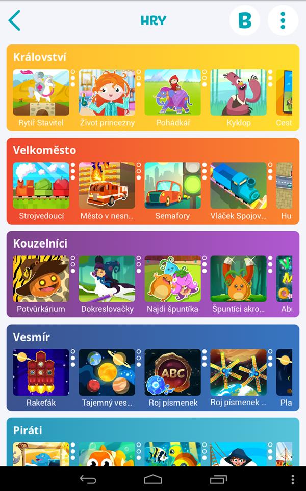 jak jsem psala, jsou rozdělené tématicky, takže si na své přijde jak malá princezna, kouzelník, policistka, tak i kosmonauti nebo obávaní piráti. Každá sekce má minimálně pět her a nespočet kol.