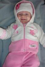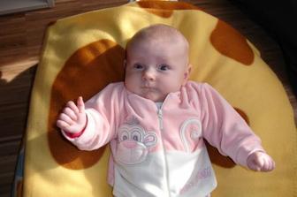 Pěkně jsem povyrostla, pan doktor mi ve druhém měsíci naměřil 59cm a navážil 5170g. Tak opět jsem pěkně povyrostla ve třetím měsíci vážím pěkných 6040g a měřím 63cm. Ve čtvrém měsíci mi bylo naměřeno krásných 65cm a naváženo 6400g.