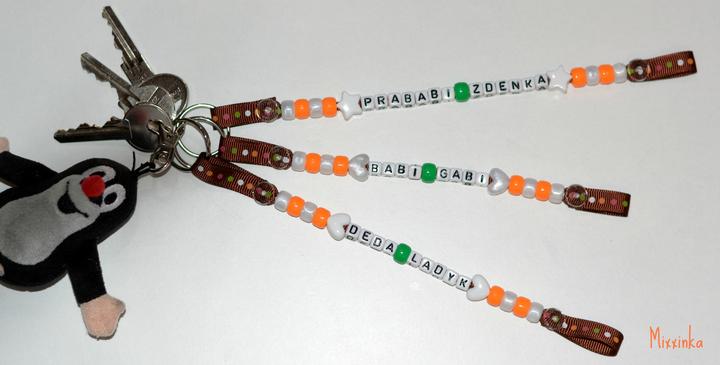 Mojí další zábavou je výroba krásných klíčenek – pro maminky a celé rodiny, náramky, nebo třeba růžence.