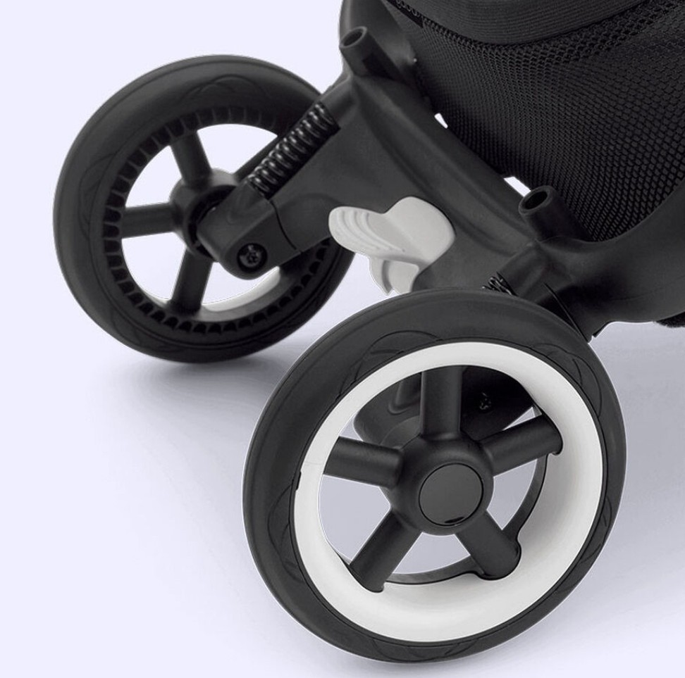 Odpružení všech čtyř koleček umožňuje lehký přechod přes obrubníky a rampy i bezproblémovou chůzi po dlažbě. Vaše děťátko tak nebude nic rušit ani při případném spánku.