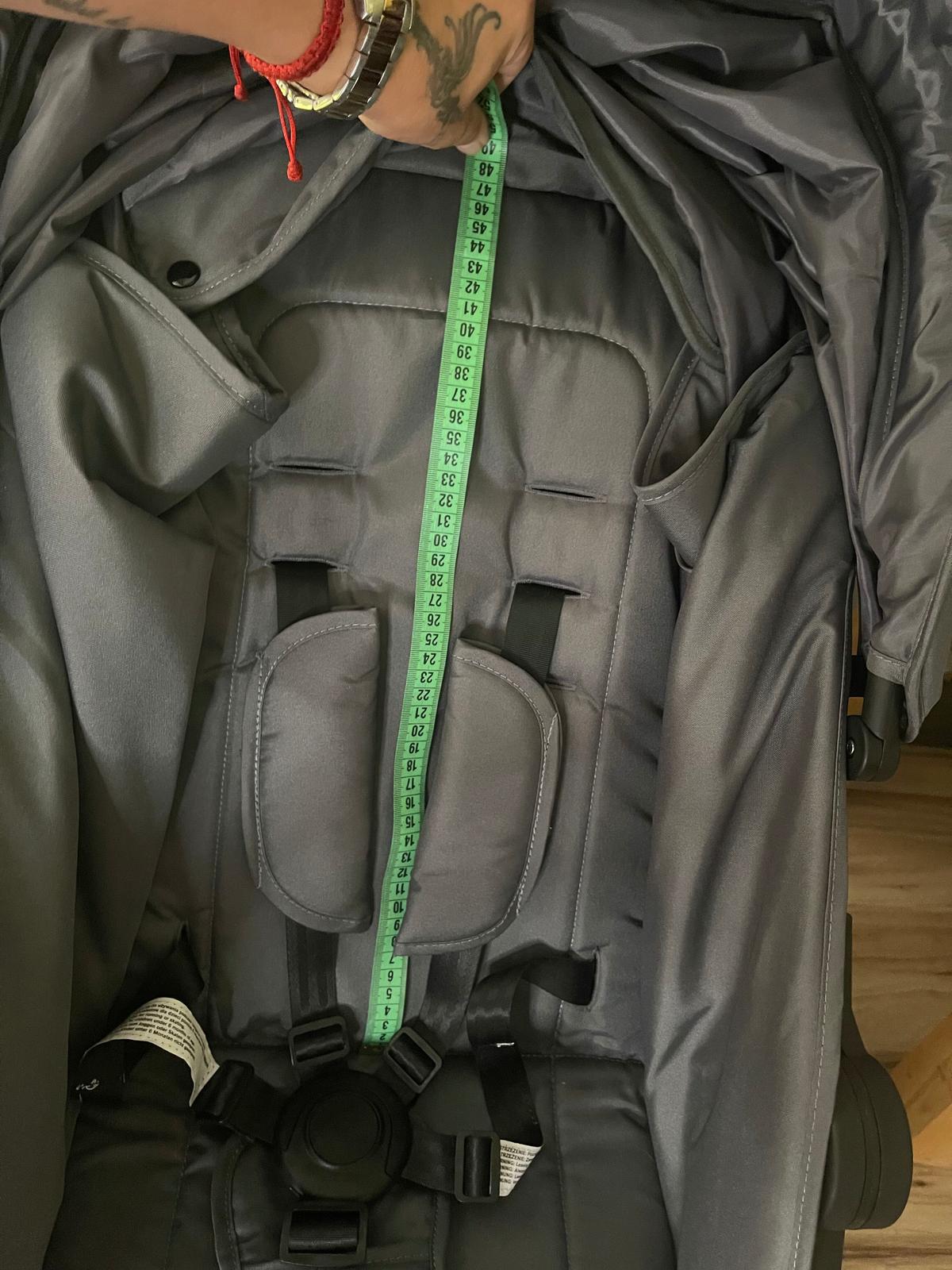 Má pásem polohovatelnou zádovou opěrku, kterou lze spolu s opěrkou nohou nastavit do téměř úplného lehu (165 stupňů), zároveň má zádová opěrka funkci běžného kočárkového sedu s malým sklonem. 5-bodové bezpečnostní pásy mají možnost výškového nastavení.