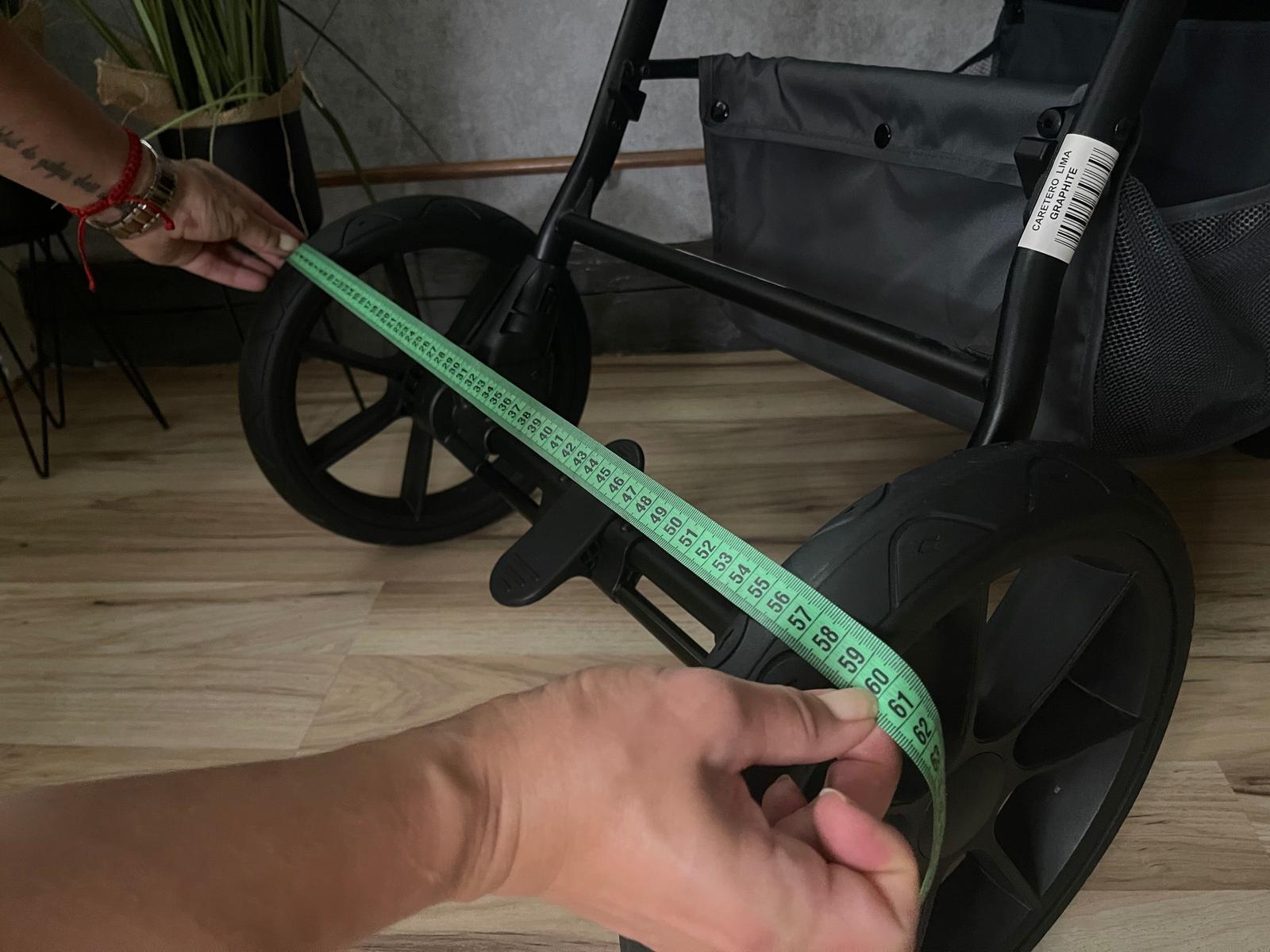 Rodičovská rukojeť je otočná a můžete si ji jednoduše přizpůsobit své výšce, a to v rozpětí od 85 do 111 cm. Nejvíce mě však potěšila 60 cm šířka rozchodu zadní nápravy, protože jsem s kočárkem v pohodě projela i přes úzké dveře 🙂.