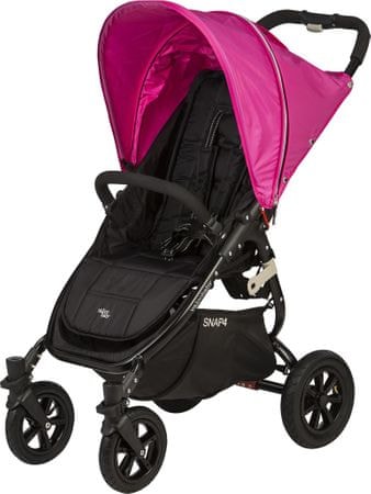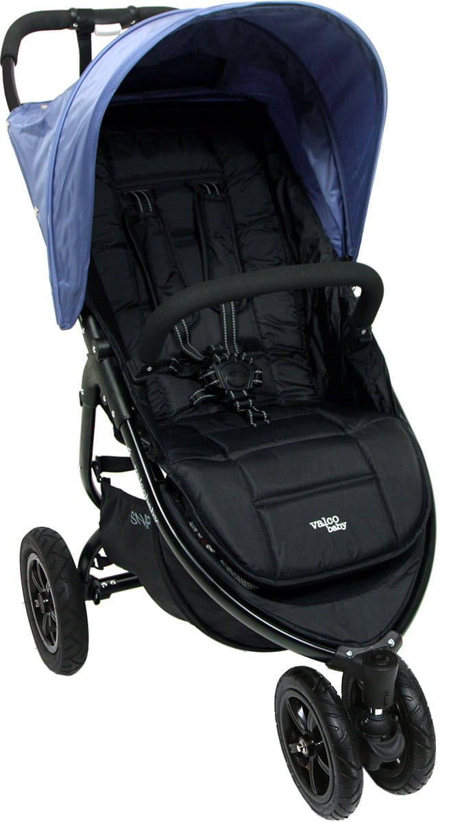 Základním - a původním - Valco Snap kočárkem je, jak jinak, Valco Snap- a protože byl původně nadizajnovaný v tříkolové verzi (ke které ale přibyla čtyřkolová), pojmenovali ho Snap 3. Tento "šusťákový" kočárek s pěnovou rukojetí, (především) černým základem a stříškami podle tvého výběru je v první řadě lehký! Snadno se ovládá, lehce skládá (odtud také vychází jeho název „snap“ a je složen sedadlem směrem dovnitř), a snadno se udržuje. Polohovat se dá, tak jako všichni jeho bratři Snapíci, jednoručním pásovým mechanismem do téměř úplného lehu - i když 180 stupňů to není. Výhodou zde je, že to jde jednou rukou směrem dolů, ale i nahoru. Další je jednoduchá, shora aktivovatelná kolébková brzda, která se netypicky naklání do boků.