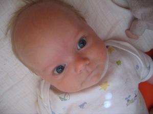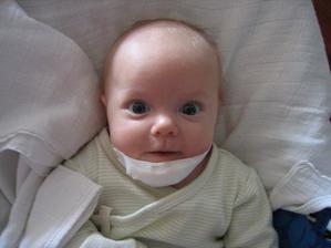 Zdar, narodil jsem se 7. 5. 2008 v 7:05 hod. nakonec v Krčské porodnici, dlouhý jsem 47 cm a má porodní váha byla 2,640 kg. Měl jsem obmotaný pupečník okolo krku, ale společně s mamkou, taťkou a dalšími čtyřmi pomocníky jsme to zvládli na jedničku. Jsem hrozný lenoch, nechtěl jsme zezačátklu vůbec sosat, ale po domluvě mamky a sestřiček jsem si dal říct :o) a mohli nás pustit domůůůůůůůůůůůůů z porodnice 11.5.+++++++16.5. jsme byli na první prohlídce u paní doktorky a byli jsme s mamčou pochválený jak nám jde kojení 🙂 už mám 2,780 Kg(z porodnice jsem byl propuštěn s váhou 2,520 Kg).+++++++++21.5. dva dny před původním termínem porodu mám 2,970 Kg, takže kdybych se narodil normálně, mám 3 Kg určitě :o)+++++9.6. kontrola u paní doktorky, jsme velký žrout, přibral jsme za 14 dní skoro kilo a mám 3,87 kg 🙂 a od porodu jsem se vytáhl na 52 cm.+++++++++++++16.6. jsme byli na kyčlích a mám je ok a příště jdu 11. září+++++23.6. kontrola u paní doktorky po šesti týdnech, už mám 56 cm a 4,5 kg a 25.7. jdu na vyšetření očíčka do Vinohradské nemocnice(pořád mi z něj teče a maminka už neví coby).....tak to vypadá, že tam ani nebudeme muset jít, už mi z očíčka neteče :o)+++++v devíti týdnech 9.7. jsme se s mamkou vážili a už mám 5,5 kg+++++++12.8. tříměsíční kontrola, mám 6 kg a 60 cm....krásné míry :o)++++++19.8.08 jsme byli poprvé plavat mimo vanu :o) byl jsem statečný i když jsem to náležitě komentoval a prý mě musejí rodičové otužovat, ke konci mi už byla zima :o/