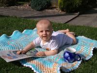 Nase zlaticko ma 4,5 mesice a jmenuje se Verunka 🙂 Casto o ni mluvim, jako o typicke zenske, protoze je neuveritelne zvidava. Vsechno chce sledovat a kdyz ji to nahodou neumoznime, nuz da nam to patricne najevo. V posledni dobe uz ani v kocarku nevydrzi, chce proste ven, aby mohla vsechno sledovat, pripadne i "komentovat" 🙂Uz snad od prvniho mesice davala jasne najevo, ze chce na ruce a koukat, zajima ji snad vsechno, doma predevsim fotky a obrazy na zdi. Rada travi cas koukanim do barevnych knizek. Casto ji bereme ven do prirody a to je neco, tolik tvaru a zajimavosti, uz jenom ty velke stromy, kterych je vsude tolik. Nastesti se rada nosi v nositku, takze to neni tak narocne na ruce 🙂 Mit takovou krasne barevnou a zajimavou hraci deku, tak to bych si snad konecne vypila i to horke kafe, ktere mam tolik rada 🙂