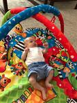 Krasny den. Nas poklad si rad hraje na dece kterou sme zdedili uz po nejmin dvou detech. Ma tam povesene ruzne hracky jako je sovicka, cervik co hrka a opicak co hraje melodii. Nelepsi znamkou jeho spokojenosti na dece pro me je kdyz usne pod hrazdickou. Krasne vycerpany hranim. Ovsem deka nema okraj zvyseny a maly se pretaci takze pod nim mam danou jeste velikou deku na nekolikrat prelozenou ktera precniva pod hraci dekou aby se neuhodil pri otocce o podlahu...