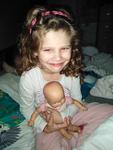 Nějaké panenky už má, ale jsou to takové ty "první panenky". Kdyby měla panenku s dlouhými vlásky, jedno jaké barvy, a dala by se krmi a převlékat tak to by byla bomba. Naložila by jí do kočárku, oblékala, krmila, přebalovala, vychovávala, to by byla paráda. Občas bychom jí ušily něco nového do garderóby a bylo by fajn. Alespoň by natrénovala na sourozence 🙂 a konečně bychom nemuseli ty koláčky z play-doh jíst mi :P.