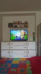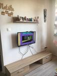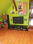 Jsme teď čerstvě přestěhování z Brna do Třebíče. V domku zatím máme původní tv z bytu, ale rozhodně to chce větší... A rozhodně na stěnu, udělali jsme i tunel ve zdi, aby nebyly vidět dráty.