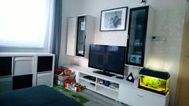 Jsme z Tábora. Televize u nás běží především během nemoci, kdy koukáme na oblíbené pohádky a večer, když je nezbytné zlo jménem žehlení. Televizi máme nyní zavěšenou na zdi, taktéž Samsung. Novou televizi budu muset pořídit, protože si s dceruškou rekonstruji nové bydlení v paneláku. Od TV očekávám aby měla nízkou spotřebu, byla kompatibilní se současnými přístroji (minivěž Samsung, telefon), aby měla již připojení na wifi a především, aby byla co nejšetrnější k očím. Foto obýváku mohu připojit pouze toto, to se však během následujících dvou týdnů změní.