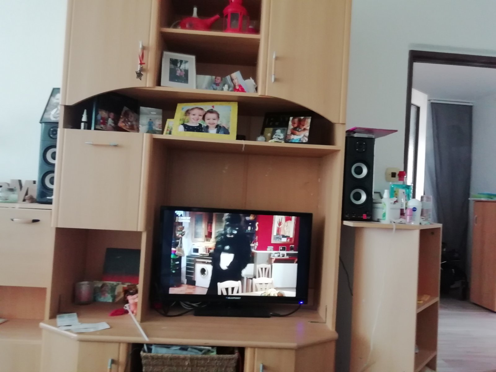 Foto naší tmavě hnědé obývací stěny s umístěnou televizí hledám marně, protože při fotografování nesnesu, když se mi blesk odráží v obrazovce 🙄