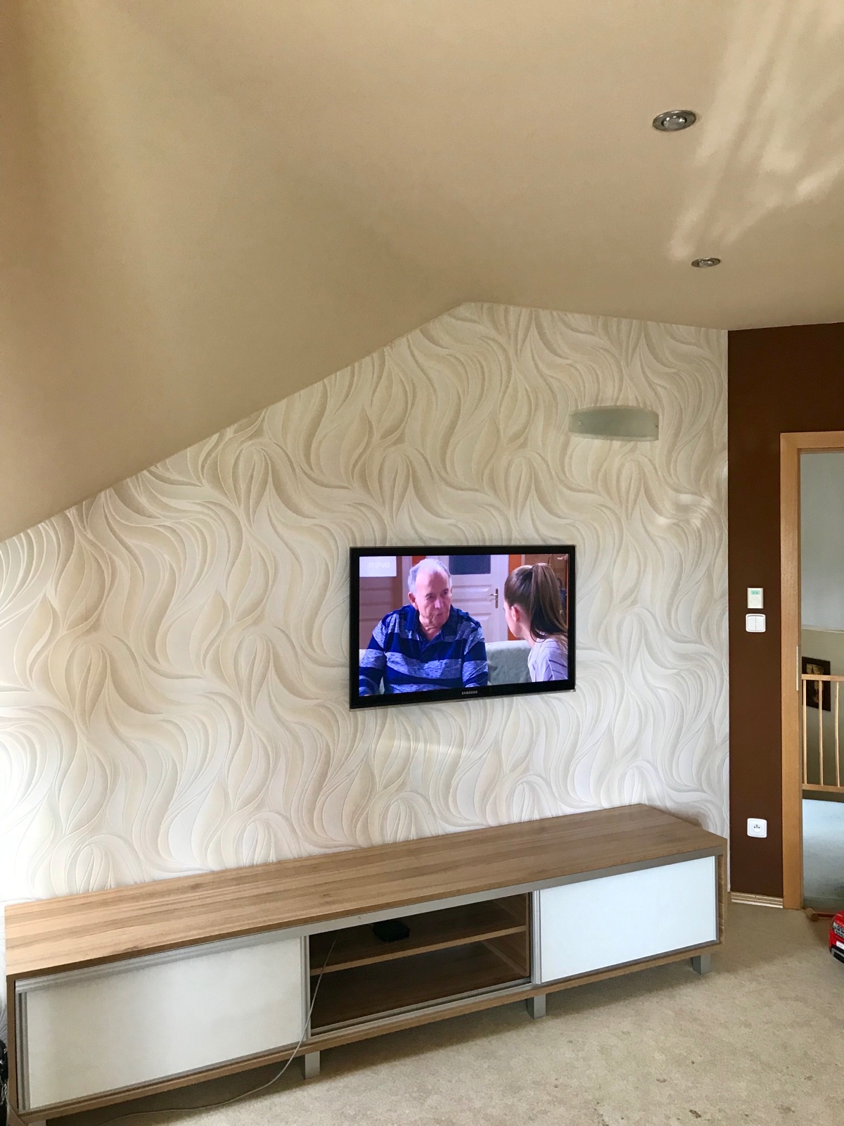 • zavěšení TV na zeď není problém, dokonce bychom to ocenili více než stávající umístění naší TV.
