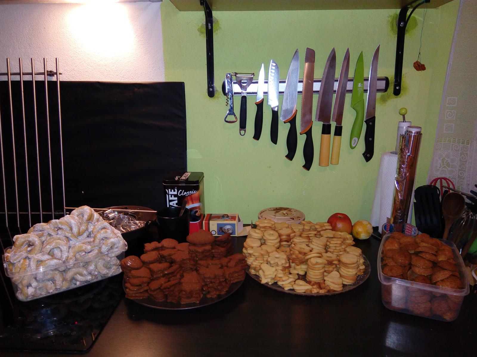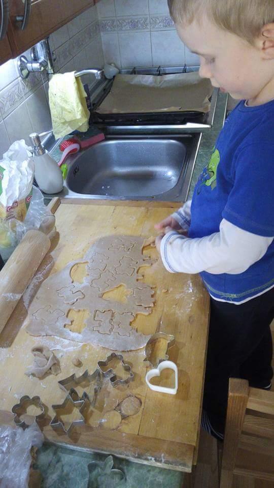 Fotku z pečení cukroví jsem nenašla, letos musíme napravit. Tak alespoň foto z pečení na oslavu 🙂