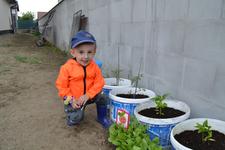 Na chaloupce u babičky,rád zalívá záhonky a sem tam si utrhne čersté rajčátko přímo z keříku nebo hrášek.To je moc roztomilé😊