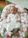Nicole, 8 tydnu, takova nase mala "michelinka" ... musime mazat kazdy zahyb. Nesmi nam chybet s sebou jednorazova prebal.podlozka, plenka, myci emulze a suche ubrousky.