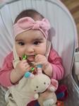 Moje vlasatá půlroční princezna. Věčně zpocená, takže koupem denně včetně vlásků. Oba rodiče jsme atopici, malá zatím (ťuk ťuk) v pořádku. Používáme kosmetiku Uriage pro miminka se sklonem k atopii, mýdlo, šampon, olej po koupeli, krém na prdýlku a teď v zimě krém na obličej proti zimě a větru.