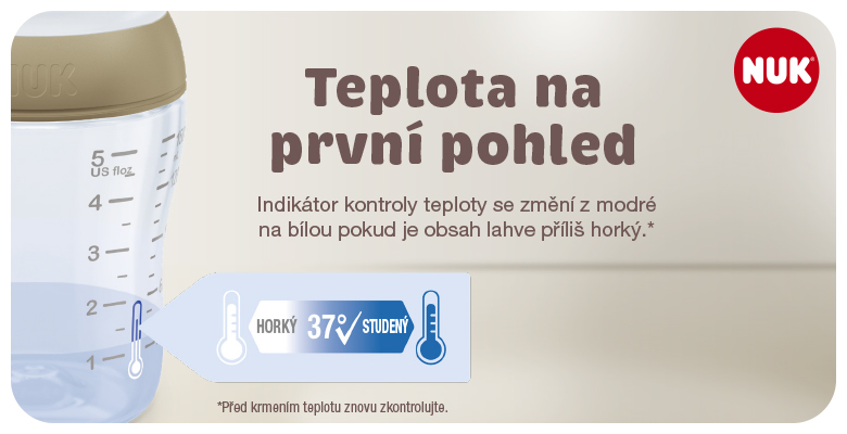 Kontrola teploty na lahvičce pomáhá rodičům dosáhnout optimální teploty a zajistit tak bezpečné krmení jejich dítěte.