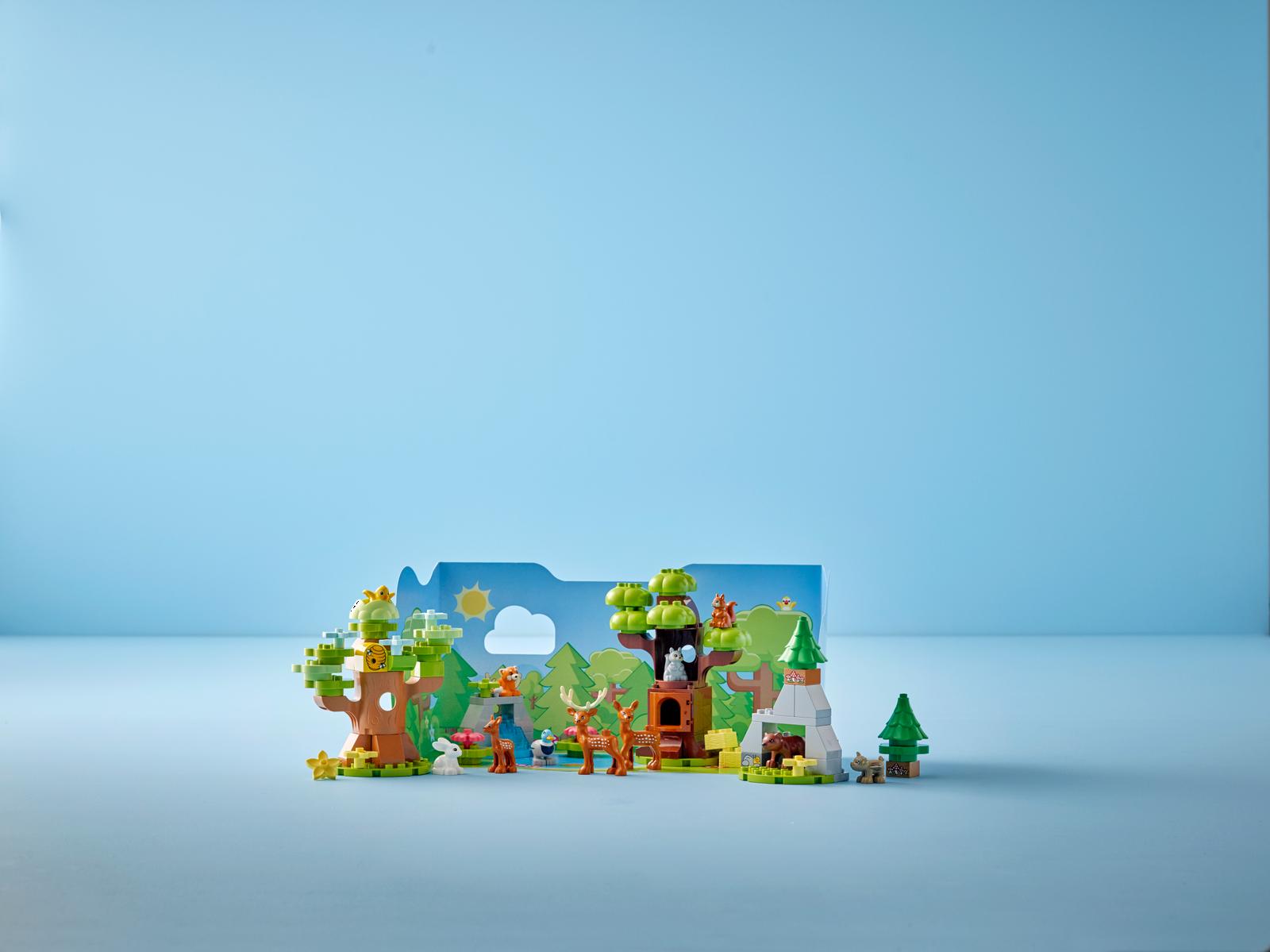 LEGO® DUPLO® Divoká zvířata Evropy (10979) vaše děti přenese do evropské volné přírody, kde poznají až 11 druhů divokých zvířat žijících na Starém kontinentu. Těšit se lze na figurky 2 dospělých jelenů a jejich mláděte, medvěda, lišky, divokého prasete, ptáčka, králíka, kachny a 2 veverek. Objeví listnaté i jehličnaté stromy, jeskyně, vodopády i obydlí, která obývají lesní živočichové. Skládačka je doplněna o trojrozměrnou skládací herní podložku, která celé prostředí pro hru dokonale dotvoří. Během nekonečných dobrodružství budou malí průzkumníci zároveň rozvíjet své dovednosti a dozvídat se nové věci o rozkošných zvířatech.
