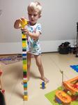 Občas mu nejde nějaký díl napasovat, tak se snaží to tam narvat hrubou silou, než aby zkusil nějak dílek pootočit. Naštěstí je po ruce maminka, která ho upozorní ať se v klidu nadechne, vydechne a dílo se podaří.