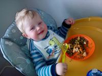 A polevka... bez naší dopomoci je absolutně nemozne ji dopravit do pusy. Ale to taky pujde. Bohuzel, kdyz ji to nejde, rychle se zmeni v nervaka a jidlo je vsude okolo...