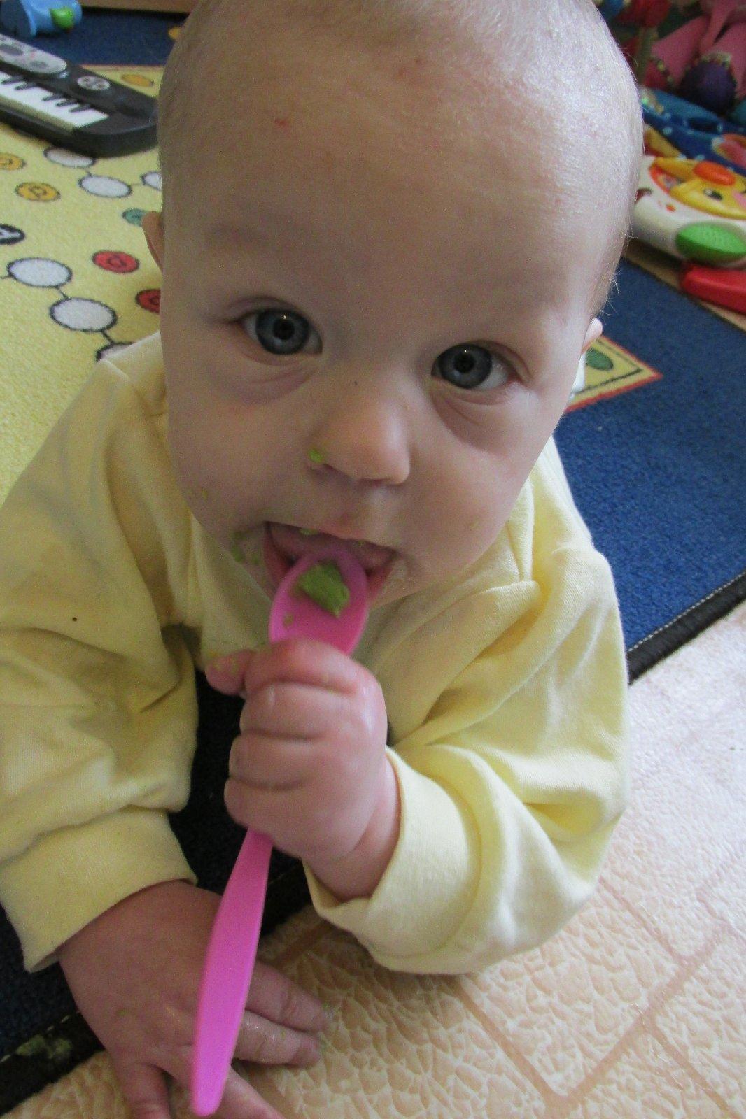 Zatím máme lžičku jen na hraní :D :D krmí maminka a jde to dobře :D
