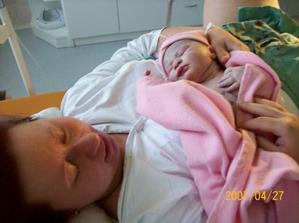 Věruška se nám narodila v kladenské porodnici 27.4. 2007, v 10.40 dopoledne s mírou 54 cm a váhou 4200g.