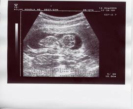 9.6. Čtvrtá KO - tlak i cytologie OK, byl semnou manžel, ale z mimíska moc neviděl. Ležel si totiž napříč a nevešel se celý na monitor. Takže nemám ani fotečku. Ale viděli jsme krásné srdíčko jak pěkně tluče. Chtěli jsme také vědět pohlaví, ale vystrkoval na nás prdelku, takže to budeme muset vydržet dalších 5 týdnů. Jinak je vše OK a mimísek odpovídá přesně 19+3 tt a měří cca 20 cm. Další kontrola 14.7.2009.